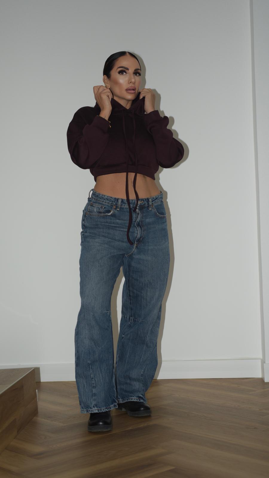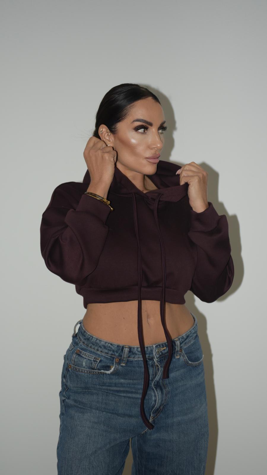 Felpa crop con cappuccio